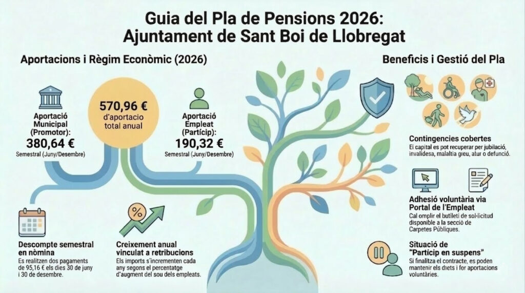 Molts companys i companyes de l’Ajuntament de Sant Boi ja coneixen que existeix un pla de pensions per al personal municipal, però també hi ha treballadors i treballadores nouvingudes que potser no en tenen gaire informació o fins i tot no saben que existeix aquesta possibilitat.