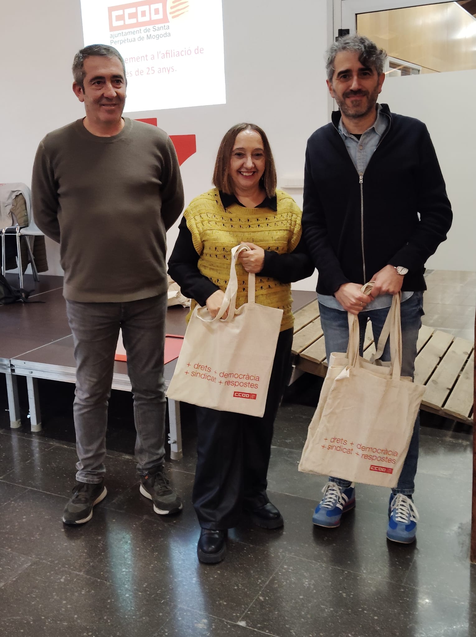 En la darrera secció sindical del 2025, les persones afiliades amb 25 anys d’antiguitat van rebre el reconeixement per part de Carles Manzanares Guadalajara i Iván Ramos Verdegay, secretaris generals de la FSC de Catalunya i de la UI Vallès Occidental i Catalunya Central.
