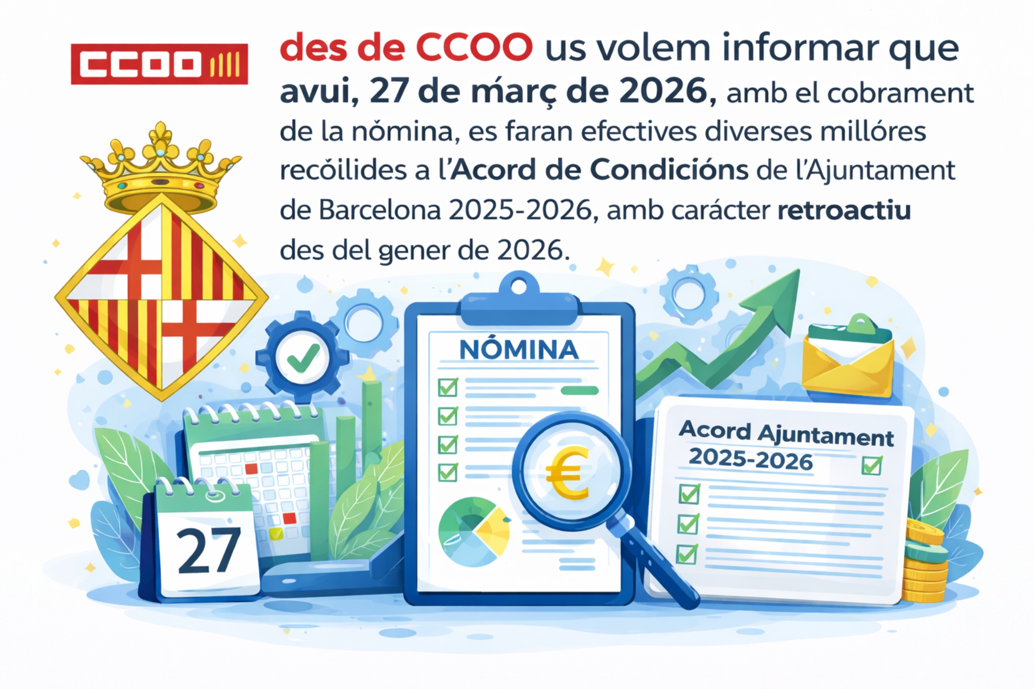Benvolgudes i benvolguts, des de CCOO us volem informar que avui, 27 de març de 2026, amb el cobrament de la nòmina, es faran efectives diverses millores recollides a l’Acord …