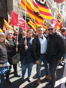 Nombrosos treballadors i treballadores de diversos sectors han participat el dijous 23 de març de 2017 en la jornada de lluita a favor de l’ocupació, els salaris dignes i la recuperació dels drets socials, convocada per CCOO de Catalunya i UGT, amb el lema #alcarrer23M .