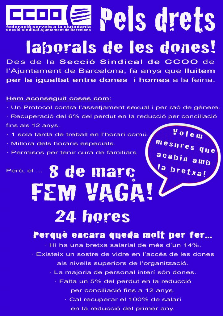 Des de la Secció Sindical de CCOO de l’Ajuntament de Barcelona, portem anys lluitant per la igualtat entre dones i homes a la feina.