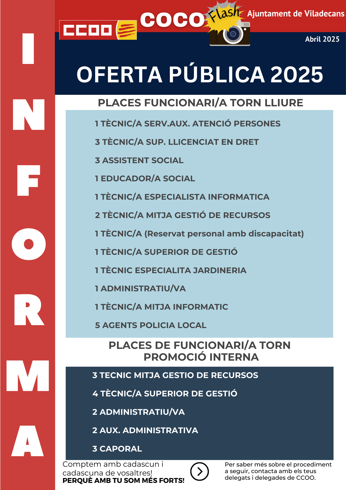 OFERTA PÚBLICA 2025 8 d'abril de 20257 d'abril de 2025 Fitxa informativa de les places aprovades a l’Ajuntament de Viladecans dins l’Oferta pública del 2025.