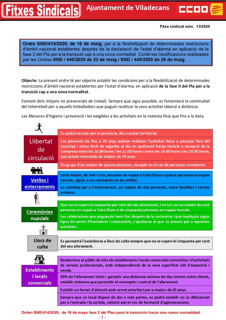 Flexibilització de determinades restriccions d’àmbit nacional establertes després de la declaració de l’estat d’alarma en aplicació de la fase 2 del Pla per a la transició cap a una nova normalitat, actualitzada amb les modificacions realitzades a la mateixa en les ordres del 23 de maig Ordre SND / 440/2020 i l’Ordre SND / 445/2020, de 26 de maig.