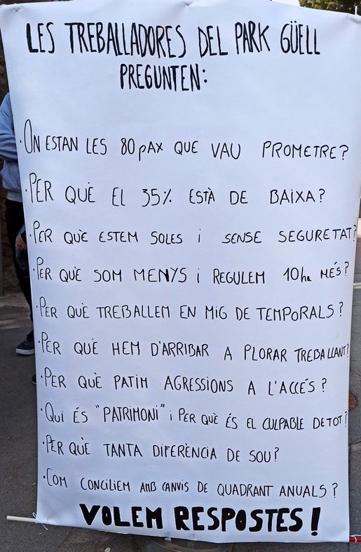 Por si la Dirección de BSM no ha tenido tiempo de leer las justas reivindicaciones y denuncias de la plantilla del Park Güell, aquí se las adjuntamos, escritas de puño y letra por ellas mismas.