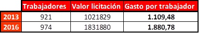 las licitaciones en 2016 sólo había 53 trabajadores más. Por lo que el gasto