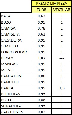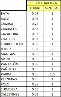precio de la lavandería, ya que según se desprende de las licitaciones, el vestuario