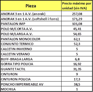 De hecho, en la licitación de 2013 queganó ITURRI, se presupuestaba la entrega de un total de 63.081 piezas de ropa