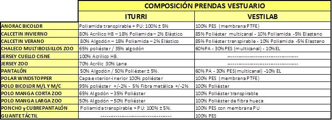 últimas licitaciones de vestuario, la concedida a ITURRI en 2013 y la concedida