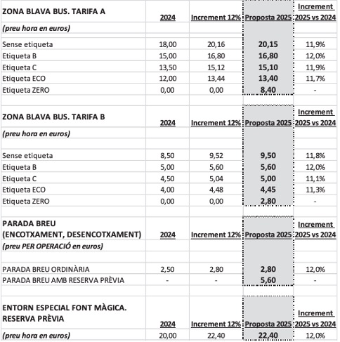 En un primer proyecto de ordenanza fiscal, se planteó una subida de tarifas desde 30 a 45 céntimos por hora, que posteriormente ha sido retirada, quedando todas las tarifas congeladas, excepto las de etiqueta 0.
