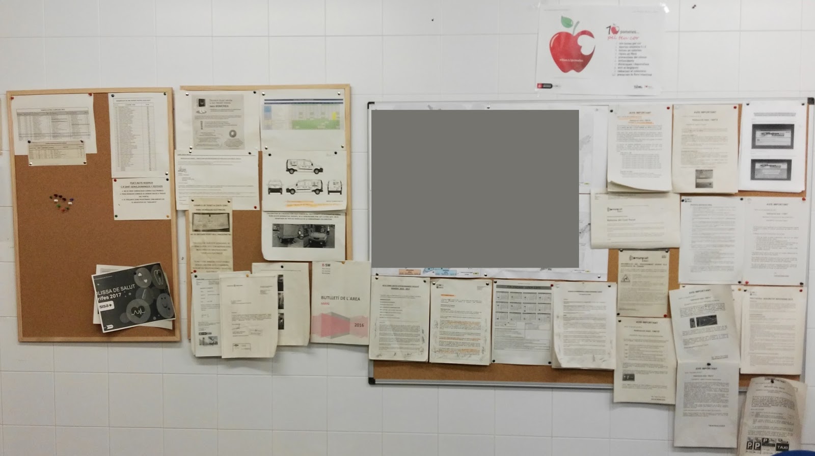 colgado en el tablón sindical una pizarra con imanes donde los trabajadores al