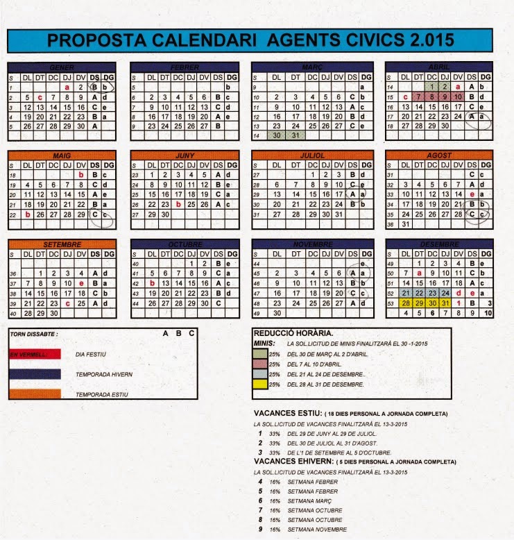 cuadrante anual se ha confeccionado de manera que si se trabaja el sábado, no
