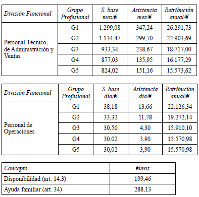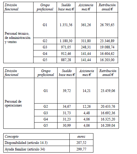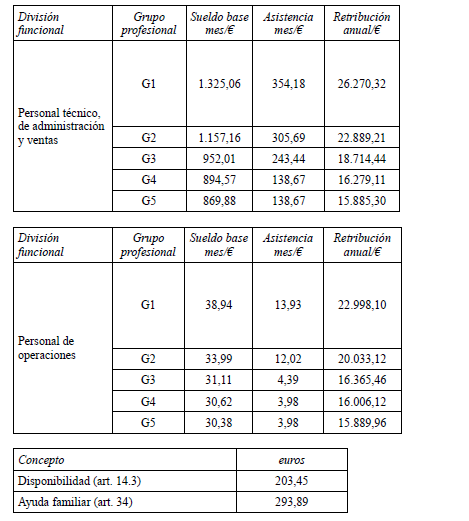 El apartado primero del artículo 30 del convenio colectivo, sobre cuantía y actualización salarial, queda redactado del siguiente modo: