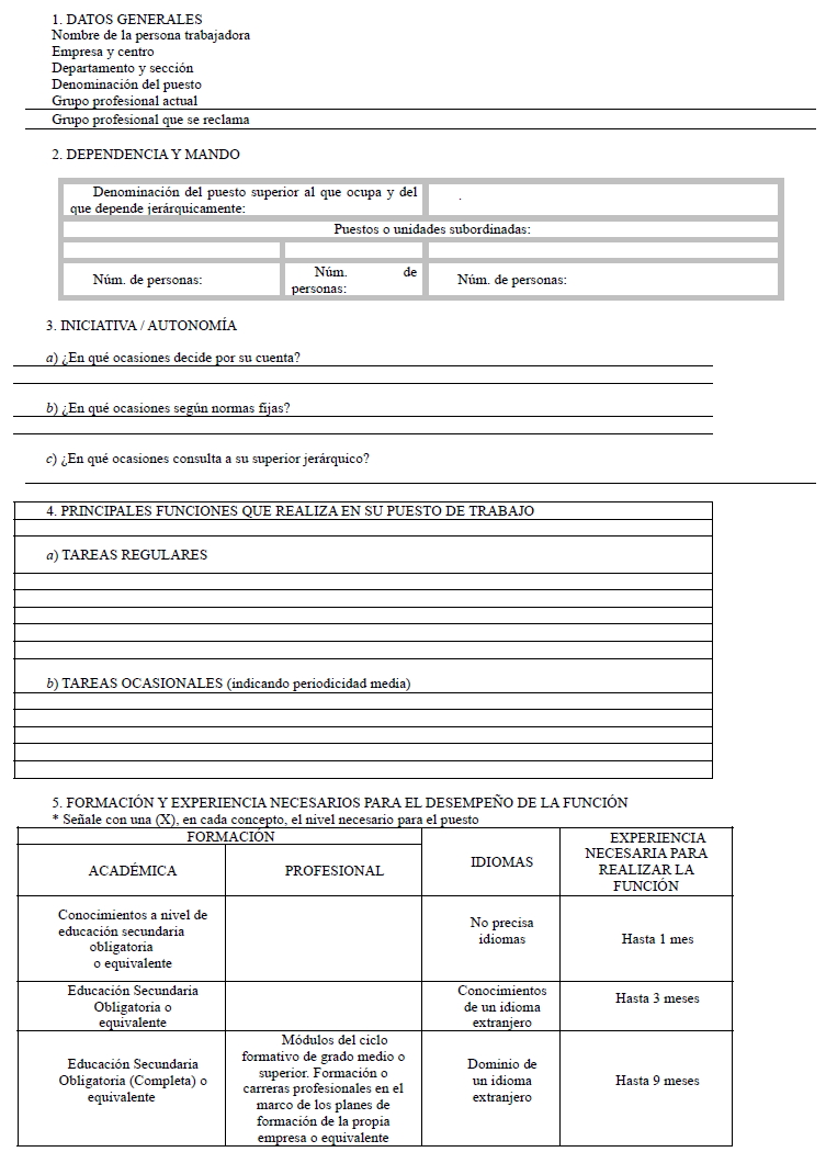 ANEXO I.- Modelo de consulta sobre clasificación profesional.