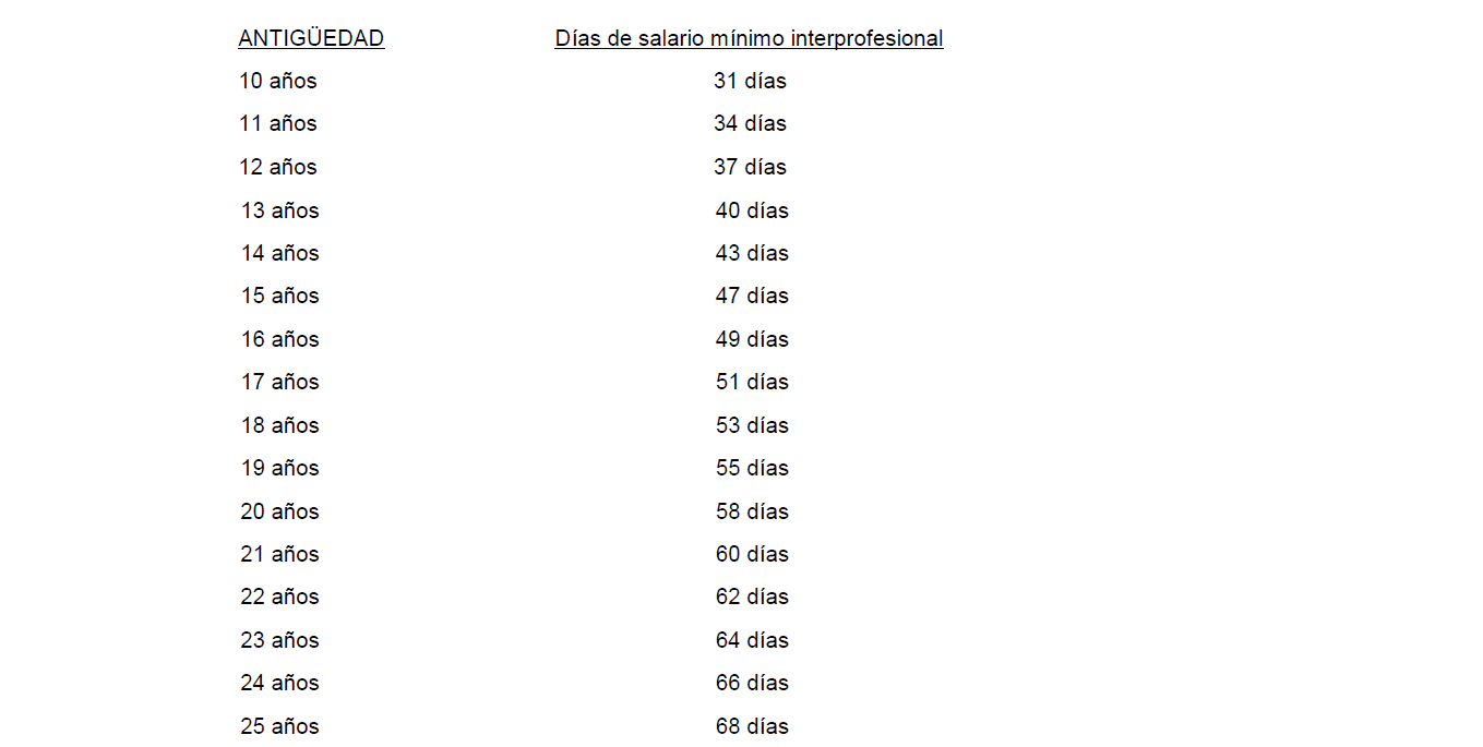 TERCERA. Los trabajadores fijos con diez años o más al servicio de la empresa, que se jubilen en la misma tendrán derecho a vacaciones retribuidas. La duración de las vacaciones estará en función de los años de permanencia en la empresa y será aquella cuyo salario sea equivalente a la cuantía de días de salario mínimo interprofesional establecido en la siguiente escala: