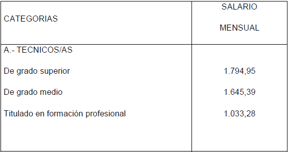 > Técnicos/as: Este grupo comprenderá las categorías tradicionales siguientes: