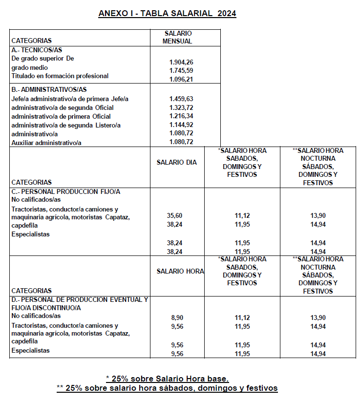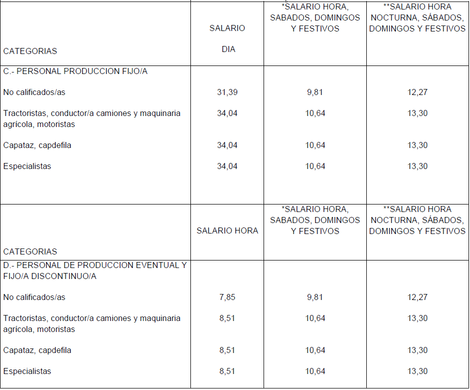 TABLAS SALARIALES ACTIVIDADES AGROPECUARIAS PROVINCIA DE ALICANTE.