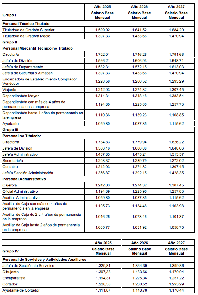 ANEXO VI.- Subsector de Comercio Textil. Tablas Salariales Años 2025, 2026 y 2027.