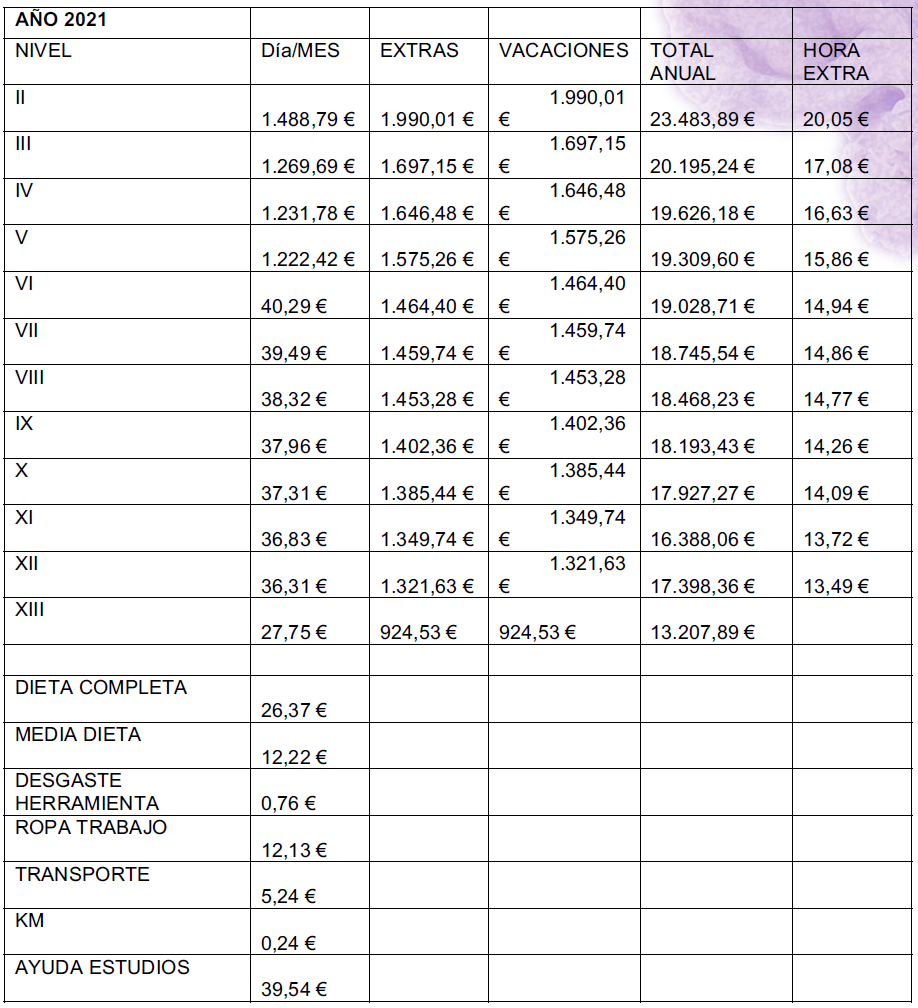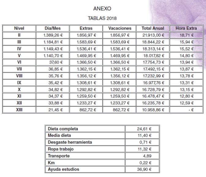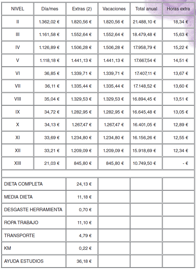En referida acta se aprueba aplicar para el año 2023 el incremento pactado por Comisión Negociadora del Convenio General del Sector de la Construcción, reflejándose el resultado en las tablas salariales que se acompañan como anexo I de esta resolución, que van acompañadas de un cuadro descriptivo de los niveles funcionales por grupos de las diversas categorías de trabajadores.