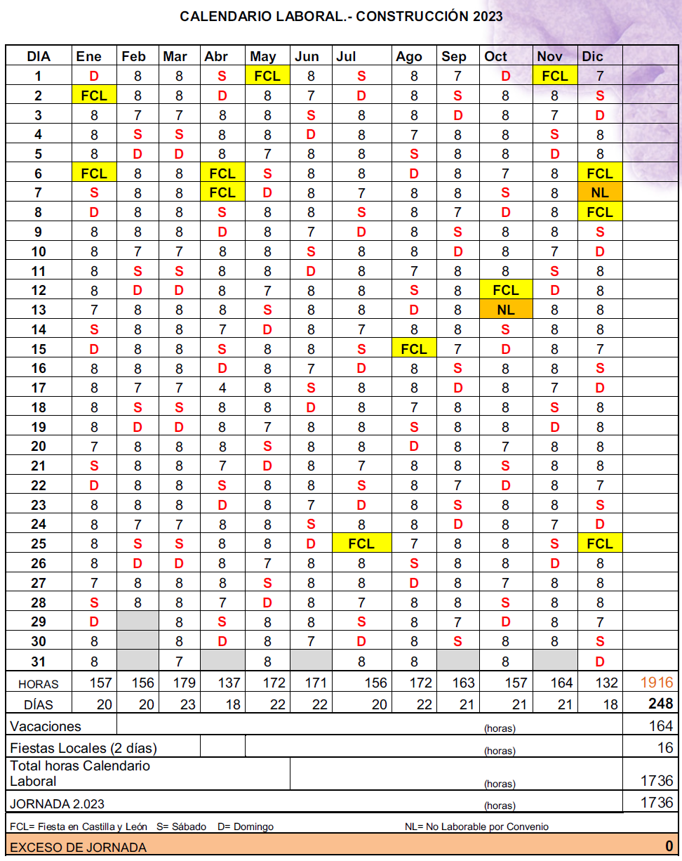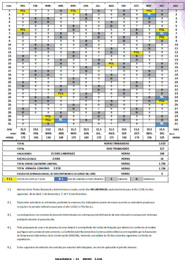El presente calendario es orientativo, pudiendo la empresa y los trabajadores pactar de mutuo acuerdo un calendario propio que se ajuste a la jornada ordinaria anual para el año 2.023 [ 1.736 Horas ].