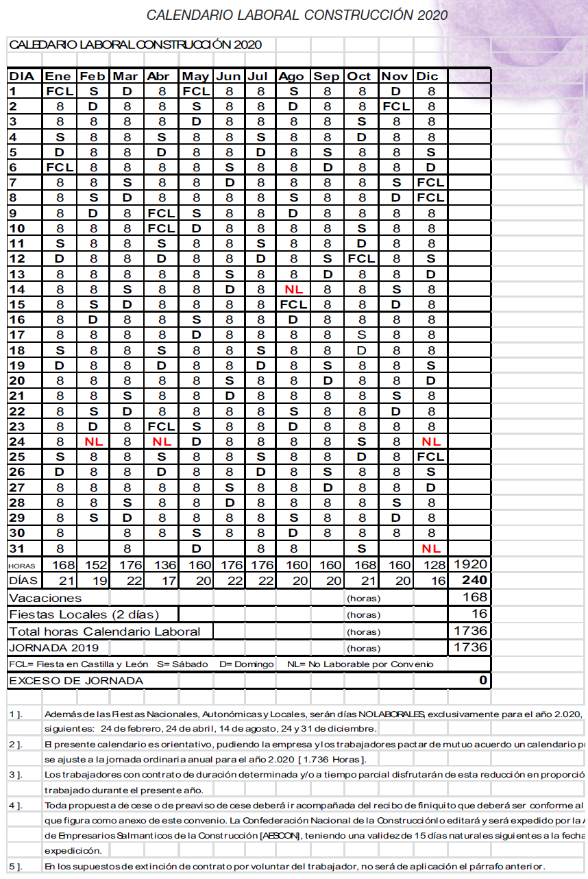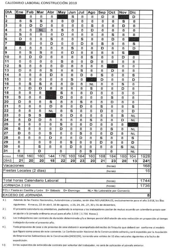 El día 4 de febrero de 2025, se registró telemáticamente el acta de la Comisión Negociadora del Convenio Colectivo para las Actividades de la Construcción de Salamanca, años 2017-2026, por la que se acuerda el calendario laboral para el año 2025.