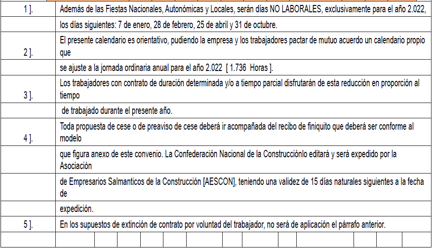Segundo.- Ordenar la publicación, obligatoria y gratuita en el B.O.P. de Salamanca del calendario laboral para el año 2023 del convenio colectivo para las actividades de la construcción de Salamanca.