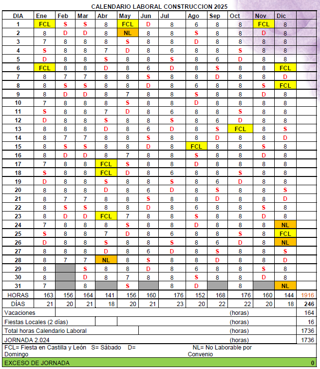 El presente calendario es orientativo, pudiendo la empresa y los trabajadores pactar de mutuo acuerdo un calendario propio que se ajuste a la jornada ordinaria anual para el año 2.025 [ 1.736 Horas ].