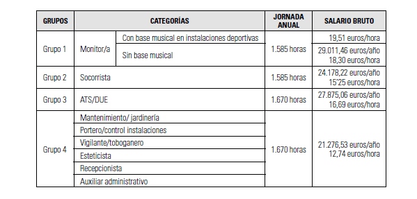 El salario bruto consignado en estas tablas salariales bien referenciado al precio hora o bien referenciado a su cómputo anual, comprende tanto el salario base como las 2 pagas extraordinarias y vacaciones. Las tablas ya están actualizadas con los incrementos regulados en el artículo 35 de este convenio.
