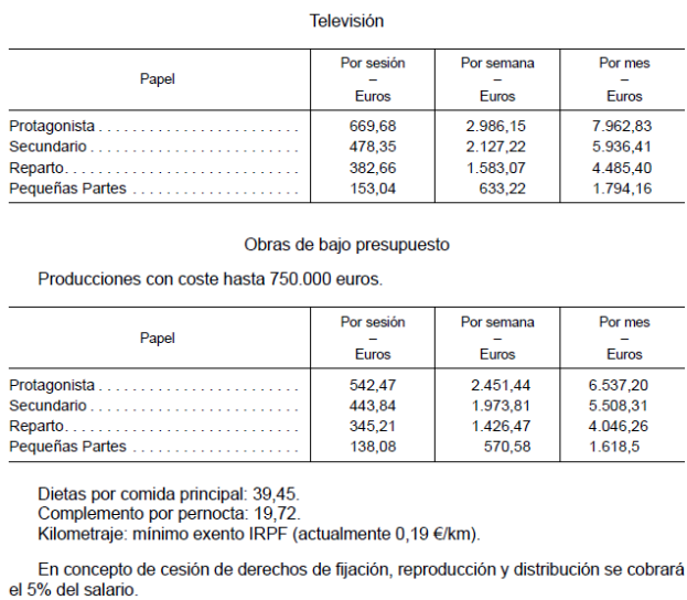 «En concepto de cesión de derechos de fijación, reproducción y distribución se cobrará el 5% del salario».