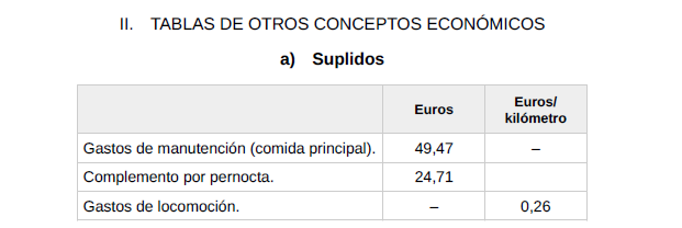 Que las dietas y suplidos por razón de desplazamiento no serán incrementados respecto a las cuantías establecidas en 2024, como estipulaba el acuerdo referido.