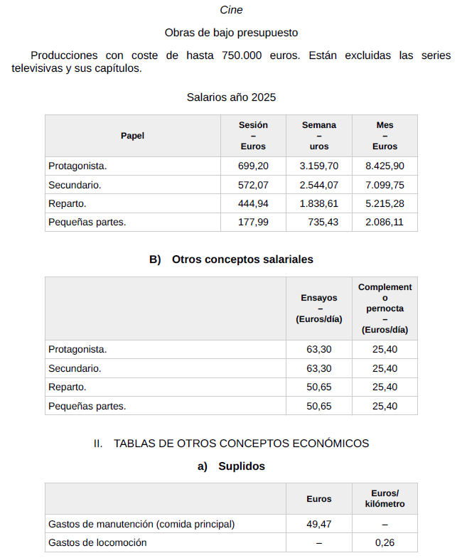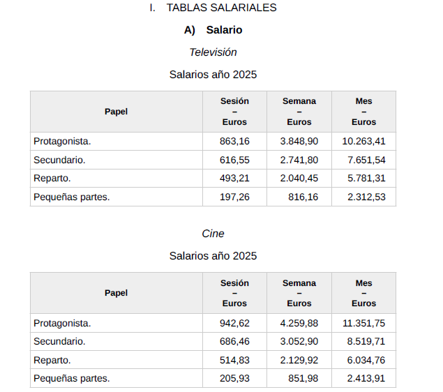 Resolución de 10 de marzo de 2025, de la Dirección General de Trabajo, por la que se registra y publica el Acuerdo parcial de actualización de tablas salariales para el año 2025 del III Convenio colectivo estatal regulador de las relaciones laborales entre los productores de obras audiovisuales y los actores que prestan servicios en las mismas.