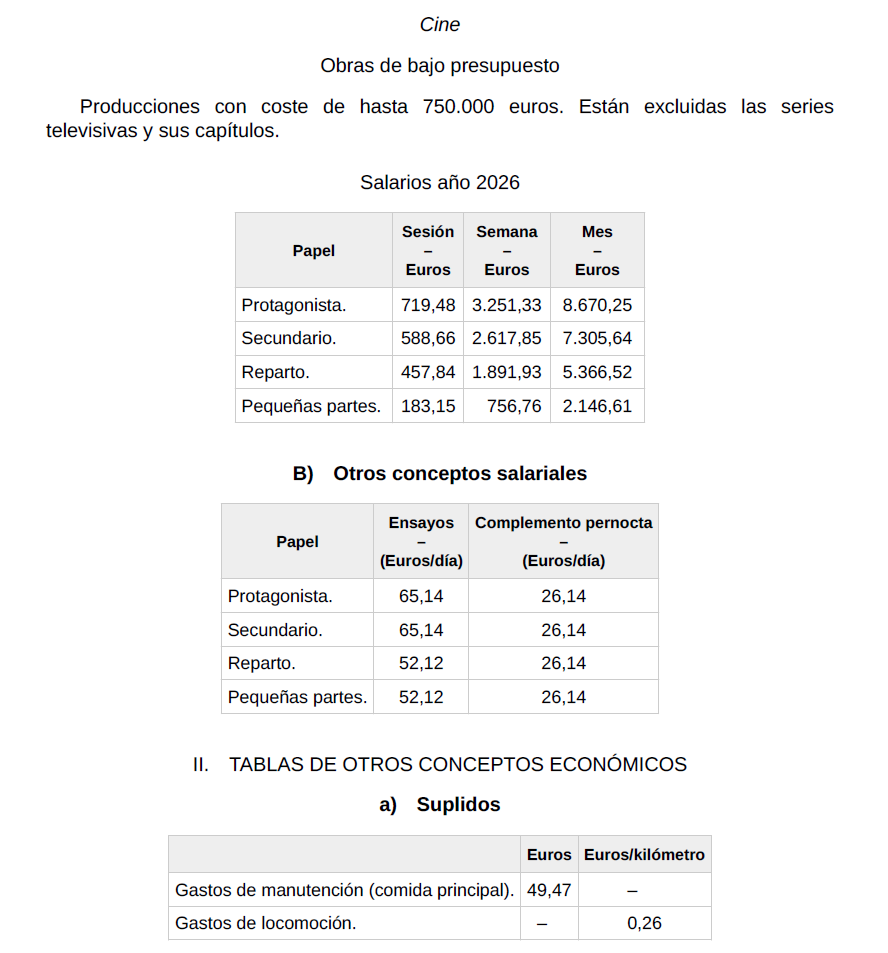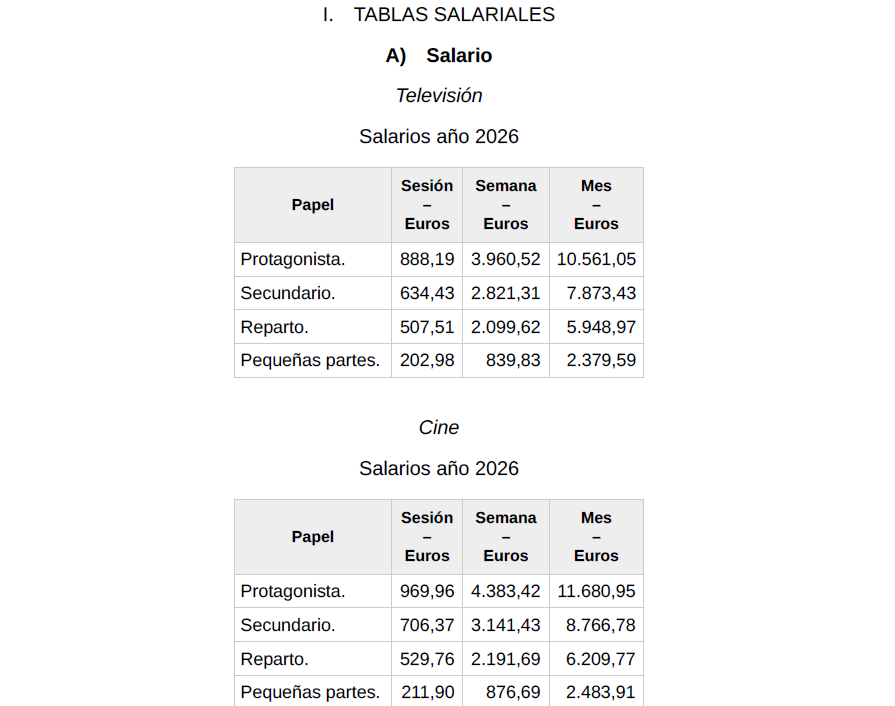 Resolución de 6 de marzo de 2026, de la Dirección General de Trabajo, por la que se registra y publica el Acuerdo de actualización de las tablas salariales para el año 2026 del III Convenio colectivo estatal regulador de las relaciones laborales entre los productores de obras audiovisuales y los actores que prestan servicios en las mismas.