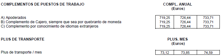 Se establece el abono mensual para todo el personal de un Plus de Transporte por importe de 73,12€ euros para el año 2013, aplicable a 1 de Enero.