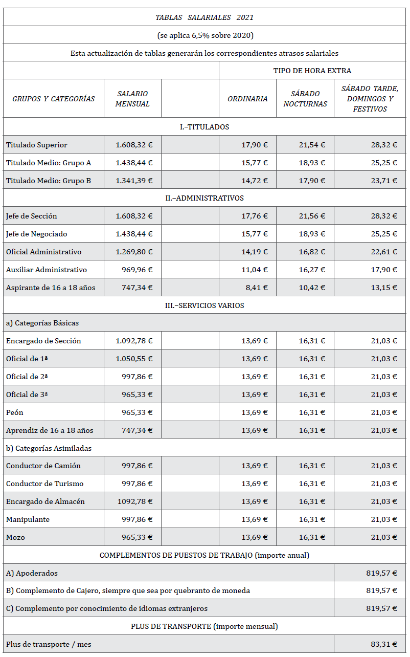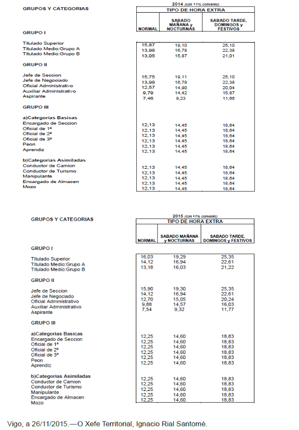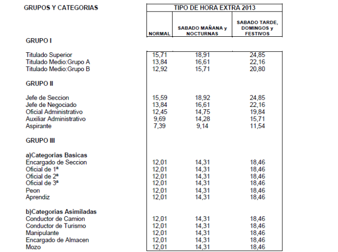 El valor de la hora extraordinaria será el que figura en la tabla anexa correspondiente.