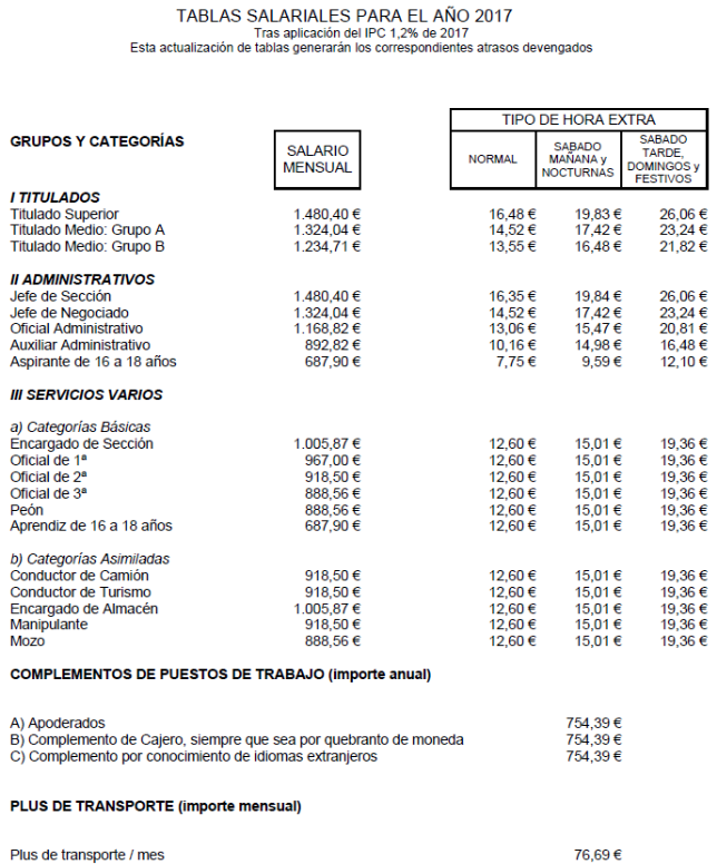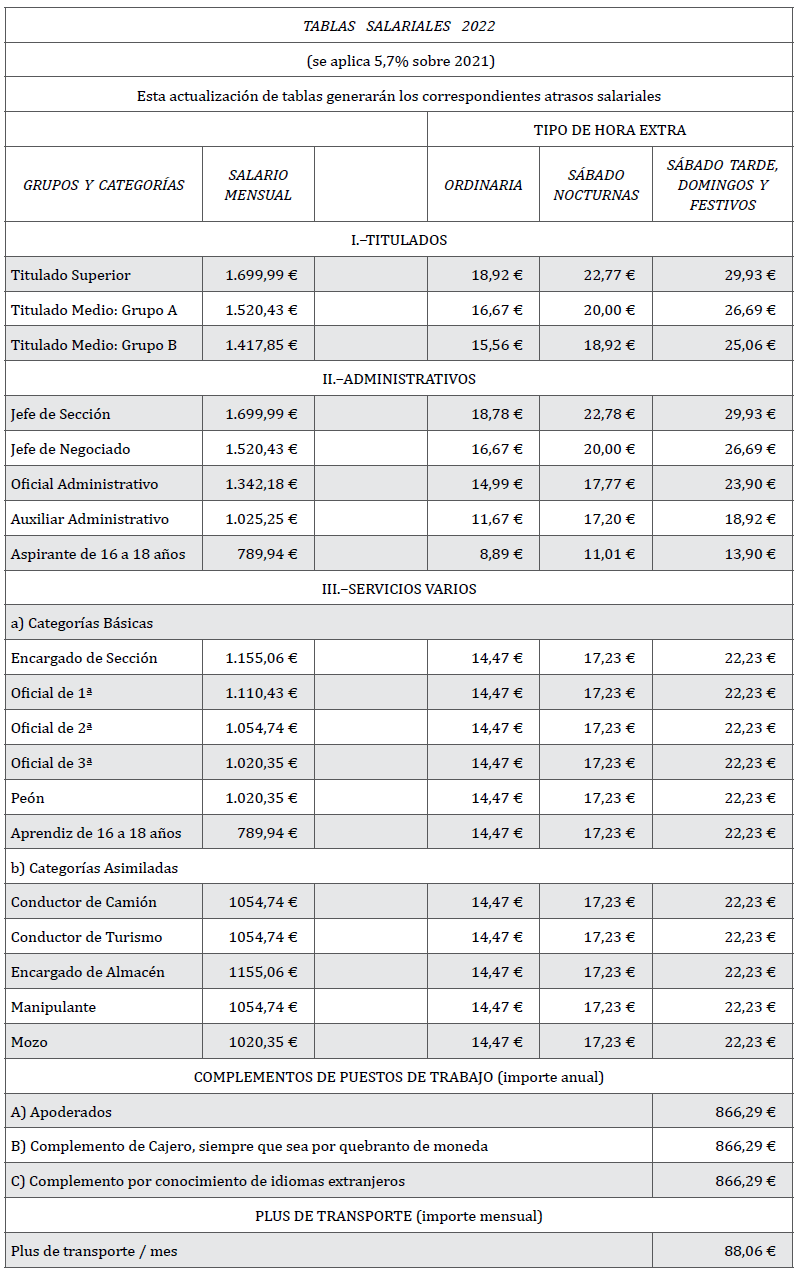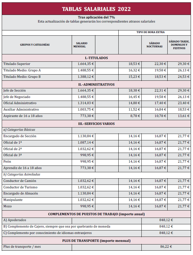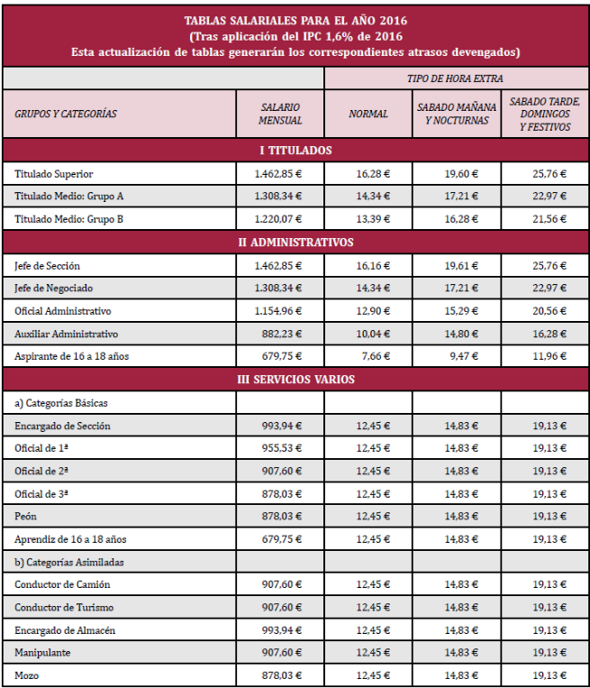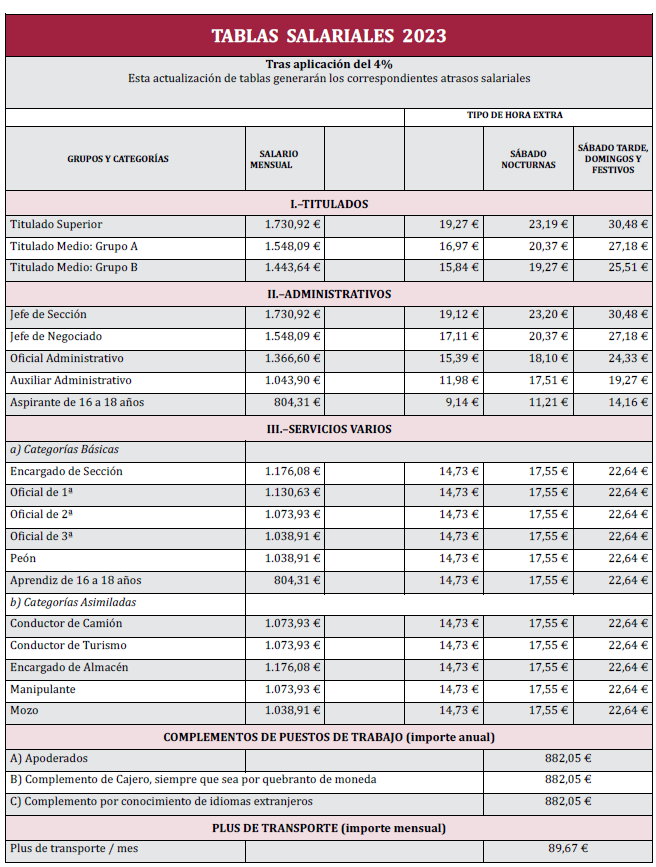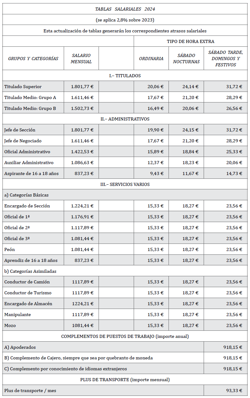 ACTUALIZACIÓN DE TABLAS SALARIALES PARA EL AÑO 2024.