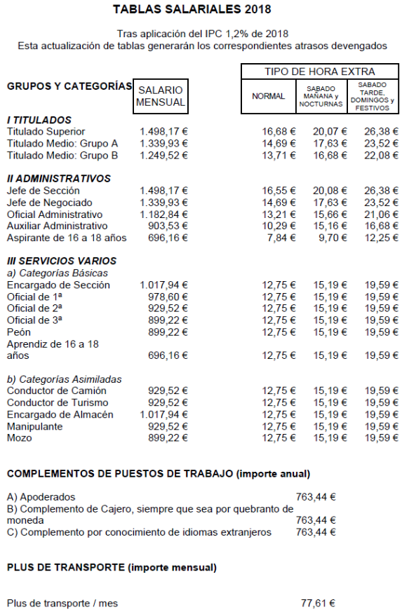 PRÓRROGA TÁCITA Y ACTUALIZACIÓN DE TABLAS SALARIALES PARA EL AÑO 2018.