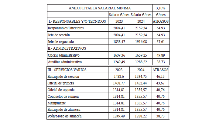 ANEXO II.- TABLA SALARIAL MINIMA 3,10%.