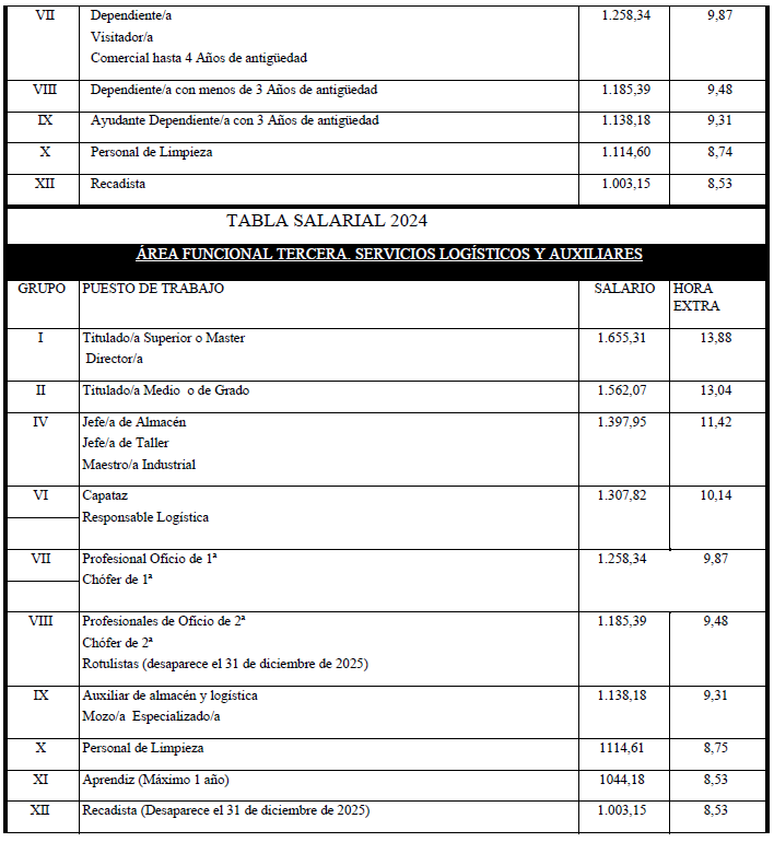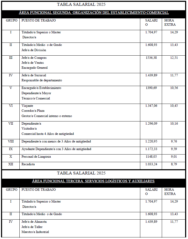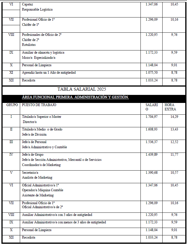 A partir del 1 de enero de 2025 todas las personas trabajadoras afectadas por el presente Convenio, percibirán un incremento en su salario base equivalente al 3 % sobre el año anterior, según consta en la tabla salarial que figura como anexo al presente Convenio.