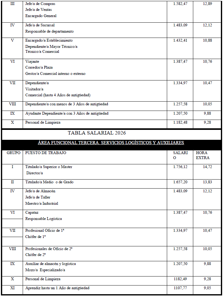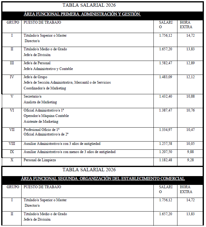 Para el año 2026, el salario del año anterior se incrementará con el 3 %, según consta en la tabla salarial que figura como anexo al presente Convenio.