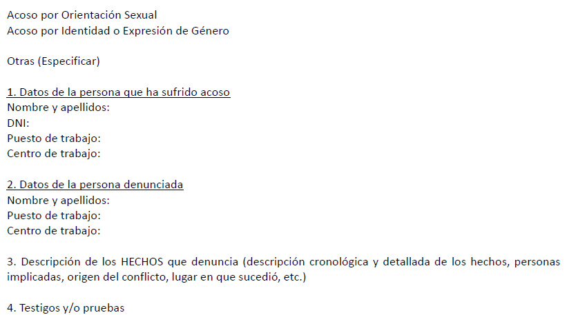 ANEXO II.- Formulario de denuncia interna por conducta constitutiva de acoso por razón de orientación sexual, identidad o expresión de género.