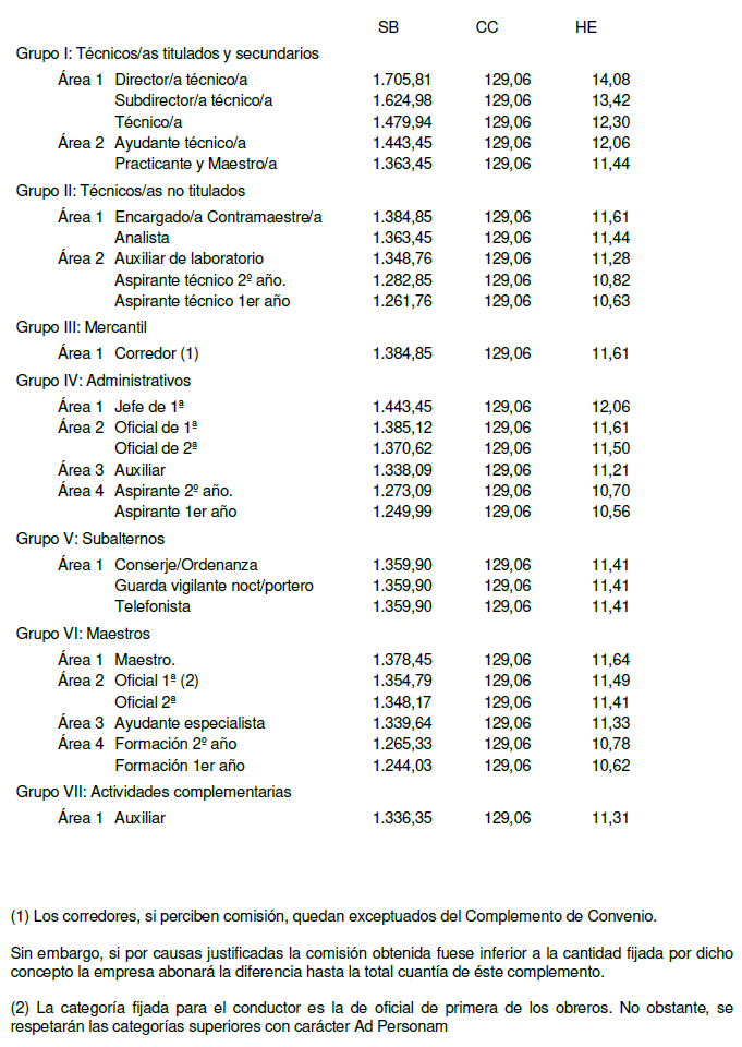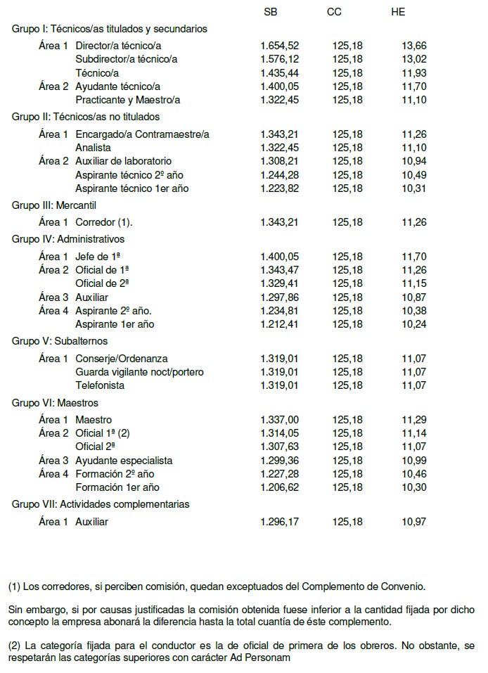 a) Se concreta que las labores y servicios que realiza el personal son complementarias de las industrias del aceite y sus derivados; por ello, las categorías profesionales detalladas en el cuadro salarial bajo este enunciado sólo lo son a los efectos de tipificar una labor profesional. La categoría de auxiliar es la equivalente a la establecida en el artículo 11, subgrupo D, apartado k) de la derogada Ordenanza Laboral de las industrias del aceite y sus derivados, definiéndose así: es el trabajador que realiza una labor que no requiere aprendizaje previo, como es el lavado de botellas, etiquetado, empaquetado de productos elaborados y otros trabajos de naturaleza similar.