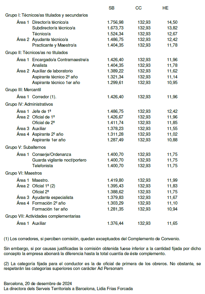 Vist el text del Conveni col·lectiu de treball del Sector de Magatzemistes, Exportadors, Envasadors, Magatzems de Destinació d’Olis Comestibles i Estacions de Descàrrega de la província de Barcelona, subscrit pel Gremi d’Industrials Oliaires i per la Federació d’Indústria de CCOO de Catalunya i la Federació de Serveis, Mobilitat i Consum d’UGT Catalunya el dia 23 de setembre de 2024, i de conformitat amb el que disposen l’article 90.2 i 3 del Reial decret legislatiu 2/2015, de 23 d’octubre, pel qual s’aprova el Text refós de la Llei de l’Estatut dels Treballadors; l’article 2.1.a) del Reial decret 713/2010, de 28 de maig, sobre registre i dipòsit de convenis i acords col·lectius de treball; el Decret 133/2024, d’11 d’agost, de creació, denominació i determinació de l’àmbit de competència dels departaments en què s’organitza el Govern i l’Administració de la Generalitat de Catalunya; el Decret 392/2024, de 15 d’octubre, de reestructuració del Departament d’Empresa i Treball i altres normes d’aplicació,