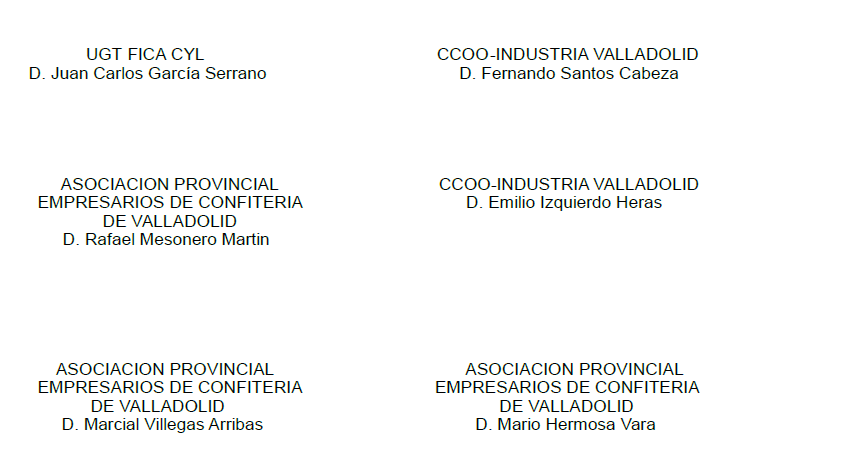 POR LA ASOCIACION PROVINCIAL DE EMPRESARIOS DE CONFITERIA DE VALLADOLID: D. R. M. M, D. M. V. A. y D. M. H. V.