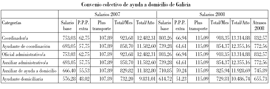 En Santiago de Compostela, siendo las 14 horas del día 3 de noviembre de 2009, en la sede del Consejo Gallego de Relaciones Laborales, sito en la calle Algalia de Abaixo, 24-bajo, se reúnen representantes empresariales y sindicales, para abordar el pago de los atrasos correspondientes a los años 2008-2009 en el sector de ayuda a domicilio de Galicia, asistiendo las personas a continuación señaladas