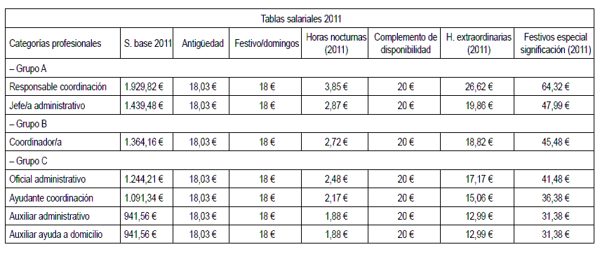 RESOLUCIÓN de 30 de enero de 2012, de la Dirección General de Relaciones Laborales, por la que se ordena el registro, el depósito y la publicación, en el Diario Oficial de Galicia, del acuerdo de la comisión paritaria del Convenio colectivo autonómico para la actividad de ayuda a domicilio de Galicia, relativo a la aprobación de las tablas salariales para el año 2011.