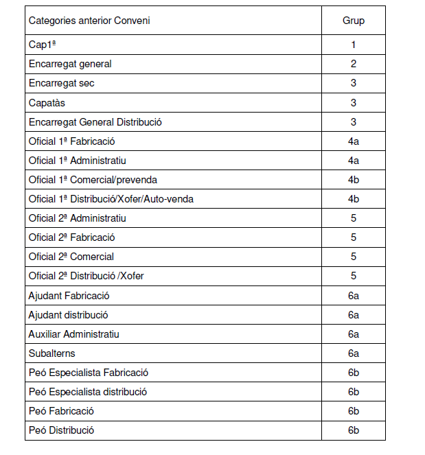 Es corresponen amb aquets grup següents categories de l’anterior Conveni.