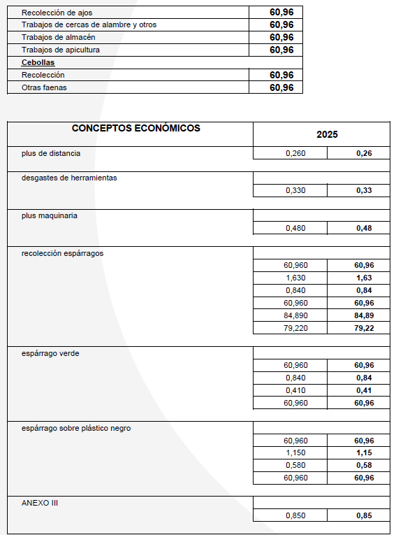 El artículo 25 del Convenio Colectivo del Campo en Cordoba 2024-2027 establece: «Para el 2025 el incremento será el porcentaje que suba el SMI, sobre todos los conceptos salariales del 2024, garantizando cómo mínimo un 2% y con efecto de atrasos desde el 1 de enero del mismo año».