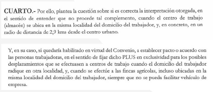 Como podemos observar, se establecen en dicho artículo varios supuestos. En el párrafo último habla del domicilio de la persona trabajadora. Dicho lo anterior debemos coger de referencia en este caso, el domicilio de la persona trabajadora y no el centro de trabajo, pues no se establece de partida para dicho plus el centro de trabajo.