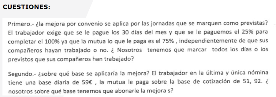 PRIMERA CUESTIÓN. – En cuanto a la primera duda que nos plantea: que, si el complemento tiene que ser sobre los 30 días o sobre los días previstos de trabajo, decimos lo siguiente: