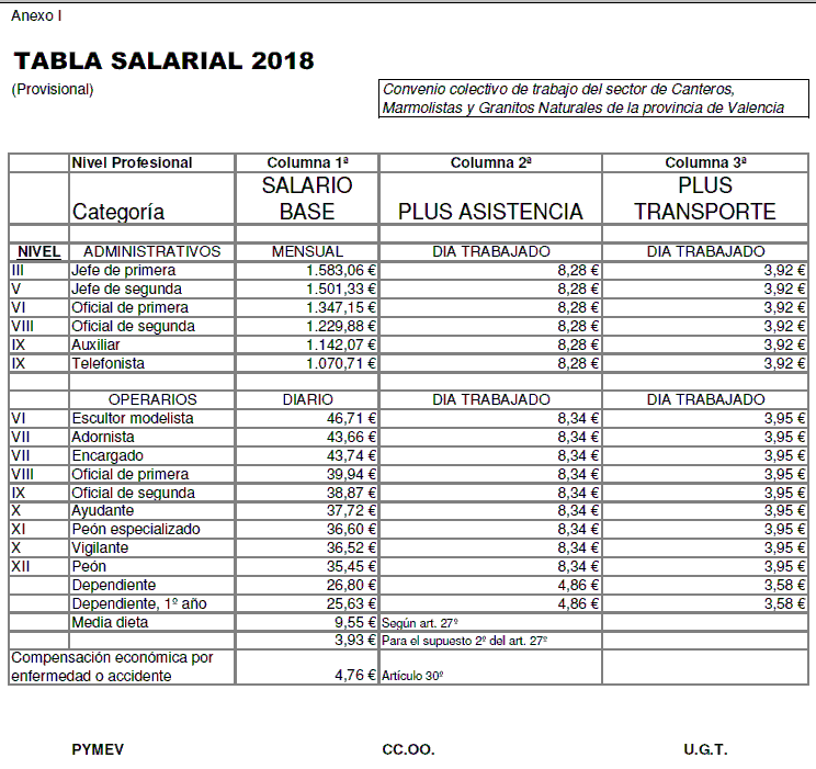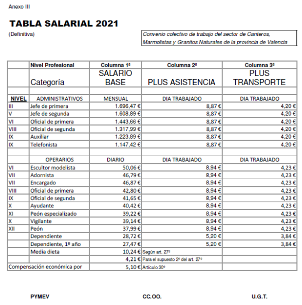 CONVENIO COLECTIVO DE TRABAJO DE CANTEROS, MARMOLISTAS Y GRANITOS NATURALES DE LA PROVINCIA DE VALENCIA