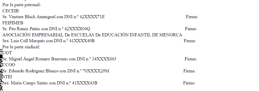 Se faculta como Secretario el Sr. Jaime Coll Roca con DNI número 43xxxx38 H , a fin de que pueda llevar a cabo todos los trámites para el depósito, registro y publicación del presente acuerdo, así como para la remisión a la comisión paritaria del convenio colectivo estatal.